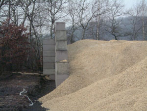 Die Besonderheit: Lange Wände, die den Anpressdruck des Gipses (Rohdichte 1,6to/cbm) aufnehmen müssen. Der Trick: In einem Raster von 15m wurden seitliche Stützen eingebaut. Hinzu kommen eine hohe Wandhöhe, um das statisch wirksame Gegengewicht aufzubauen.