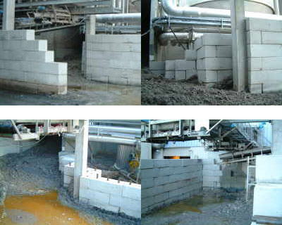 Nachträglich wurde erkannt, das die Fabrik mehr Spuckstoffe produziert, als geplant worden war. Zudem darf der wasserdichte Untergrund nicht durchstoßen werden. Mit Multiblöcken wurde vorhandener Platz so gut wie möglich genutzt -- so dicht wie möglich an die Maschinen heran, auf engstem Raum eine Schüttgutbox bauen. So schafften wir ein zusätzliches Volumen von ca. 750 cbm.